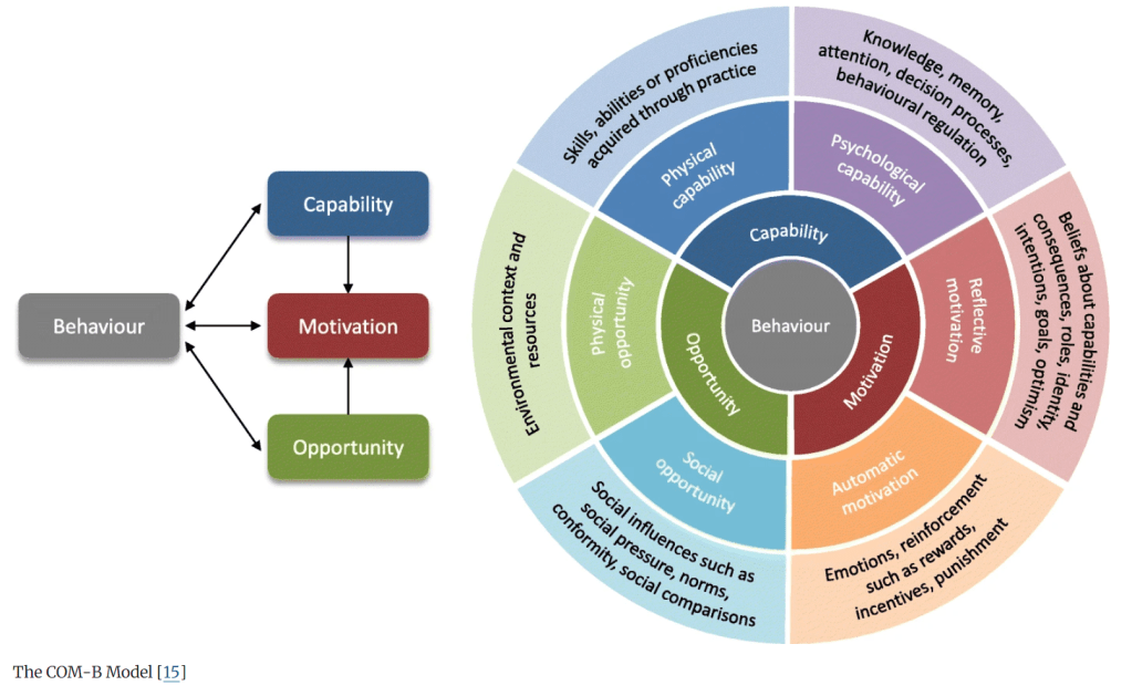 - Ridley-Moy, D. (n.d.). COM-B Behaviour Change Framework. Behaviour Change Network. Retrieved February 8, 2026, from https://www.behaviourchangenetwork.com/post/com-b-behavioural-framework/ ↩︎